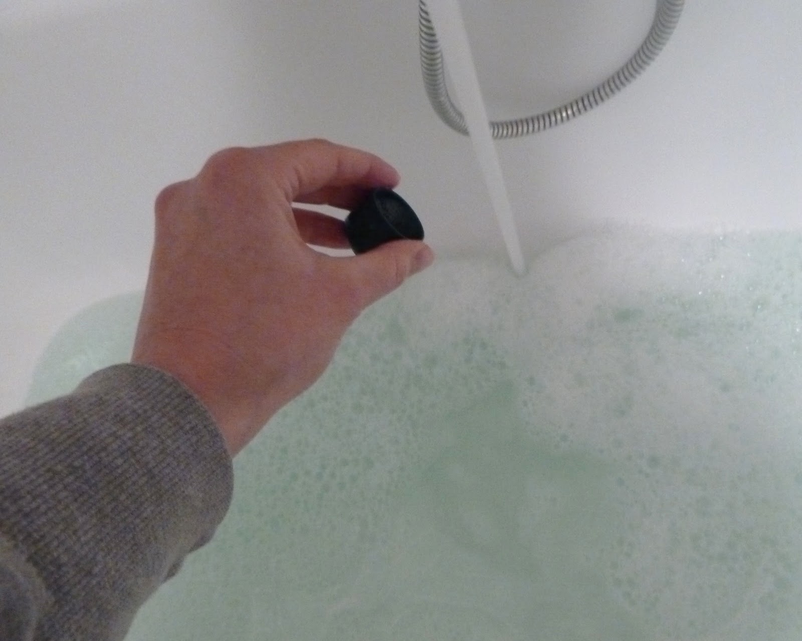 | Und zum Tagesabschluss ein paar Kapseln Erkältungsbad ins Wasser gegossen. |