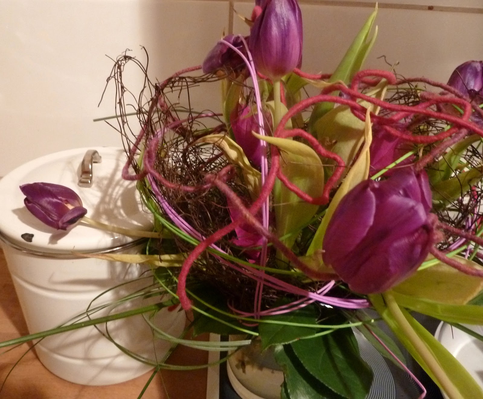 | Den Geburtstagsblumenstrauß von den alten Blüten befreit. |